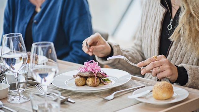 HX Expeditions' onboard restaurants offer an array of fresh, in-season menus, including plant-based dishes, complimentary still or sparkling water, and soft drinks. Draught beers and house wines are included with all meals. As this is an HX cruise, there are also food management waste programmes on all ships; in 2023, there was a 22% decrease in food waste per guest.